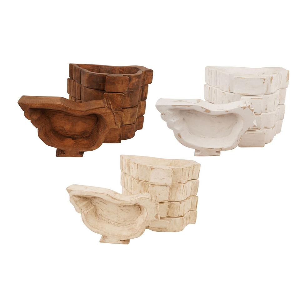 Wood Large Dough Bowl with Long Candle Holder Hand Carved flower design Rustic Decorative Tray Home Christmas Decor