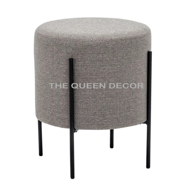 Wood Legs Material Round Shape Brown Fabric Super Quality Ottoman Stool Home Luxury Furniture Accessories
