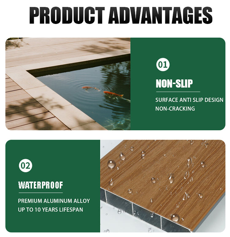 Wood-Look Aluminum-Plastic DIY Aluminum Alloy Flooring for Outdoor Scenic Area Riverwalk Boardwalk Swimming Pool & Pond Cover