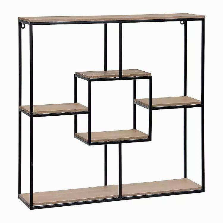 Wood & Metal Modular Wall Shelf Floating Decorative Rack for Bathroom Kitchen Living Room with Square Pattern Made Iron Plastic
