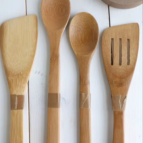 Brass Non-Stick Art Deco Industrial Design Kitchen Utensil Set Engraved Spatula Soup Spoon Long Handle Slotted Spoon Frying Pan
