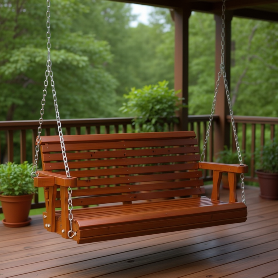 Wood Outdoor Patio Swing Chair 2 Seater Traditional Design For Porch Deck Garden Furniture