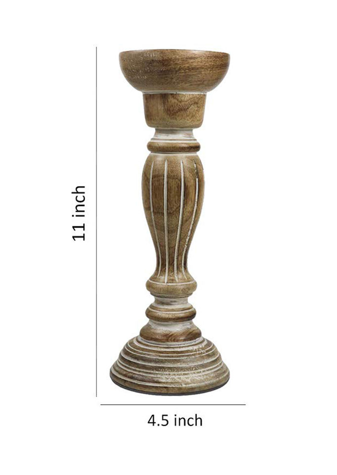 Handcrafted 11x4 Wood Pillar Tealight Stand Durable Candlestick Holder Silver Metal Accessories Christmas Dining Hotels Home