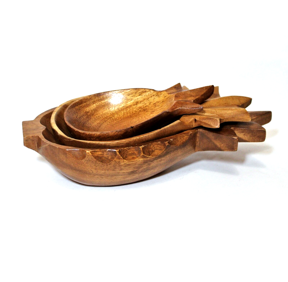 Wood Pineapple Bowl Dessert Set 7 PCS Spoon And 4 Bowl And Serving Bowl Customized Sale