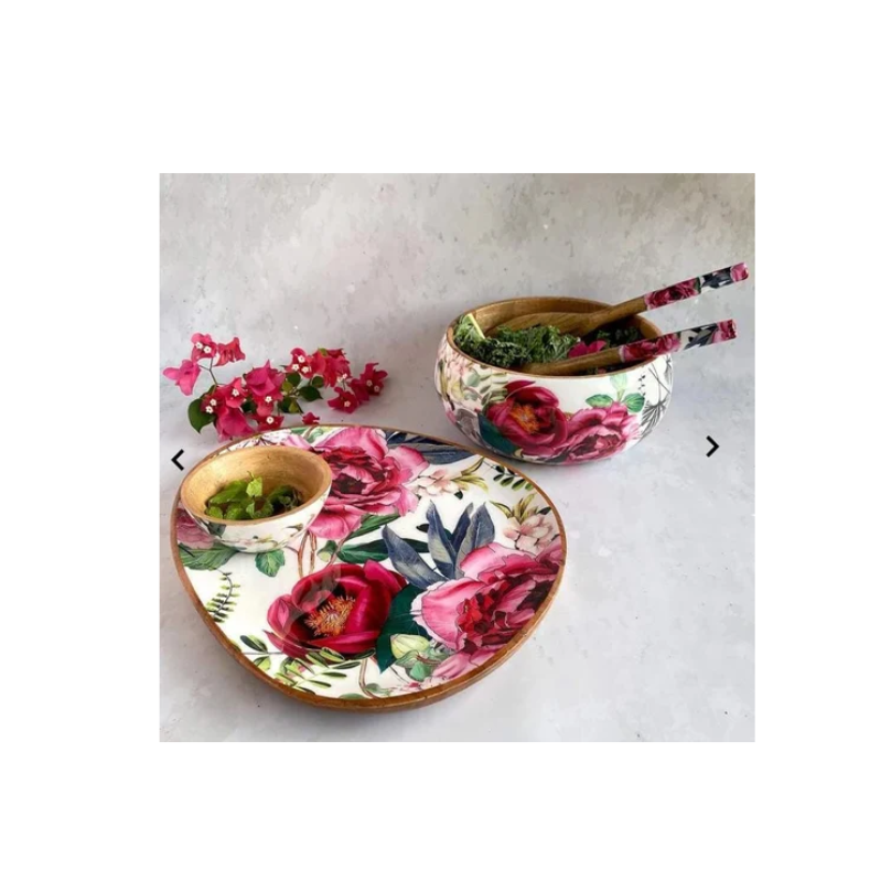 Wood Printed Charger Plates Dinner Wedding Elegant Decoration Plate with Bowl Spoon with Restaurants Use