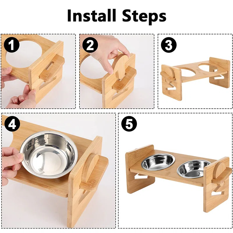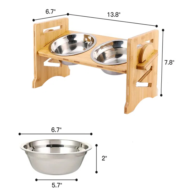Wood Raised Dog Bowl Elevated Wooden Dog Food Stand with Stainless Steel Bowls Pet Food Stand From Falak world Export