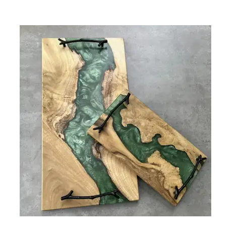 Wood & Resin Serving Tray Natural Wood Tray Green River design Crafts Top Price