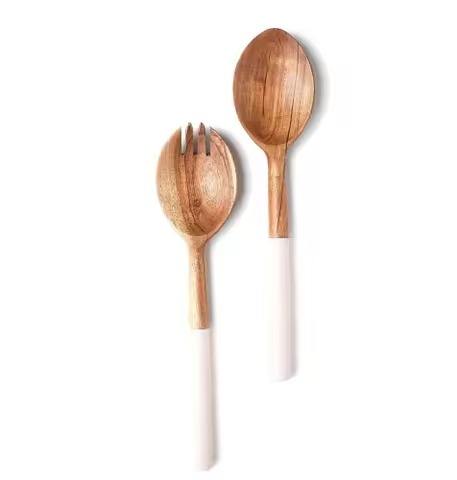 Wood & Resin Spoon Sky Blue and White Shade Design Crafts Salad Server With Cake Dessert Spoon Set
