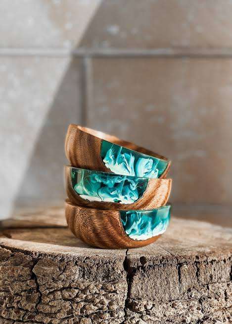 Wood Resin The wood appears to be a medium-to-dark hardwood likely Acacia or Mango wood chosen for its rich prominent grain and