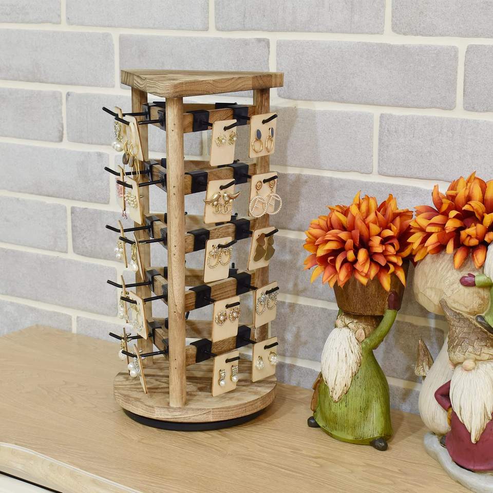 Wood Rotating Jewelry Display Tower Hoop Earring Display Earring Card Storage Stand for Store Showcase and Home Earring Rack