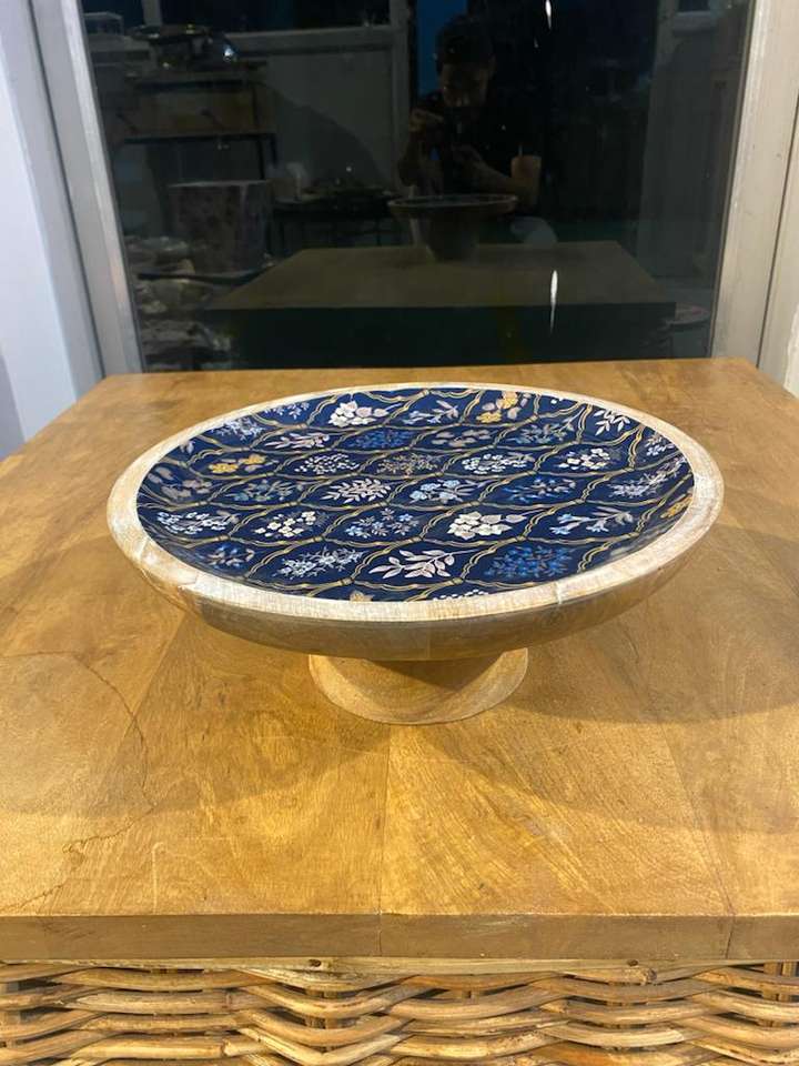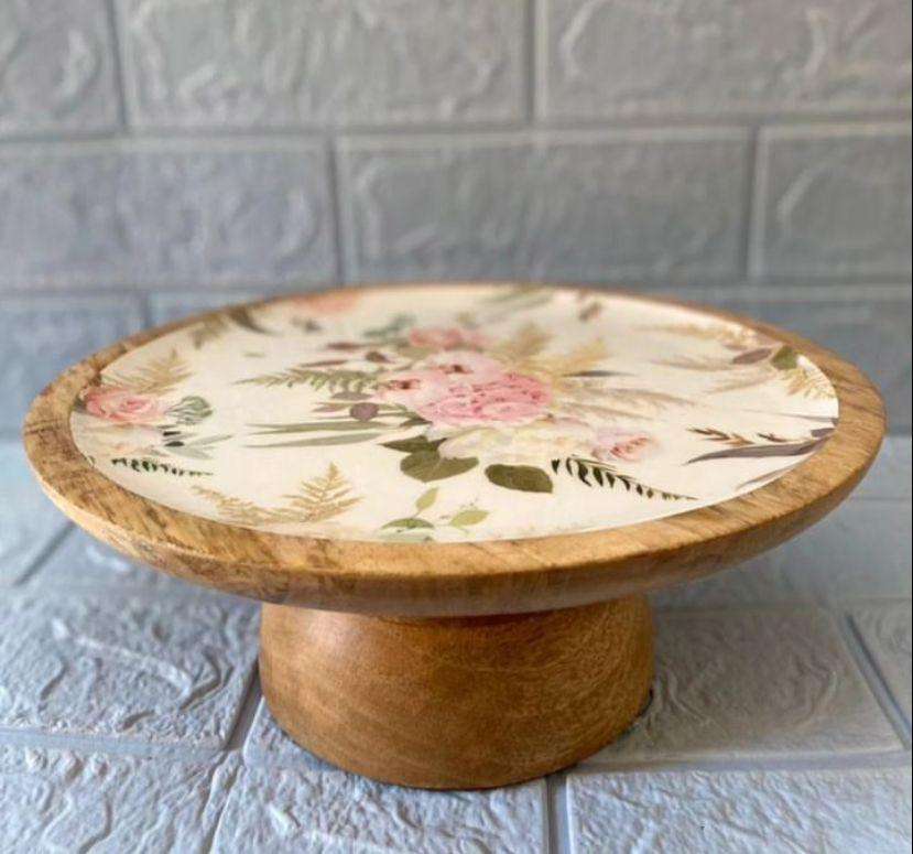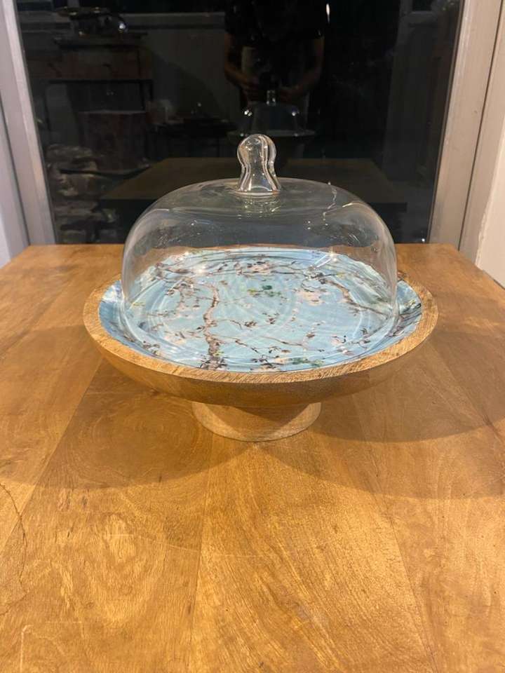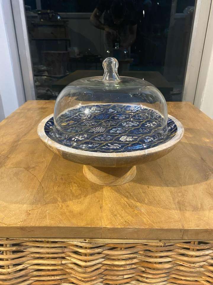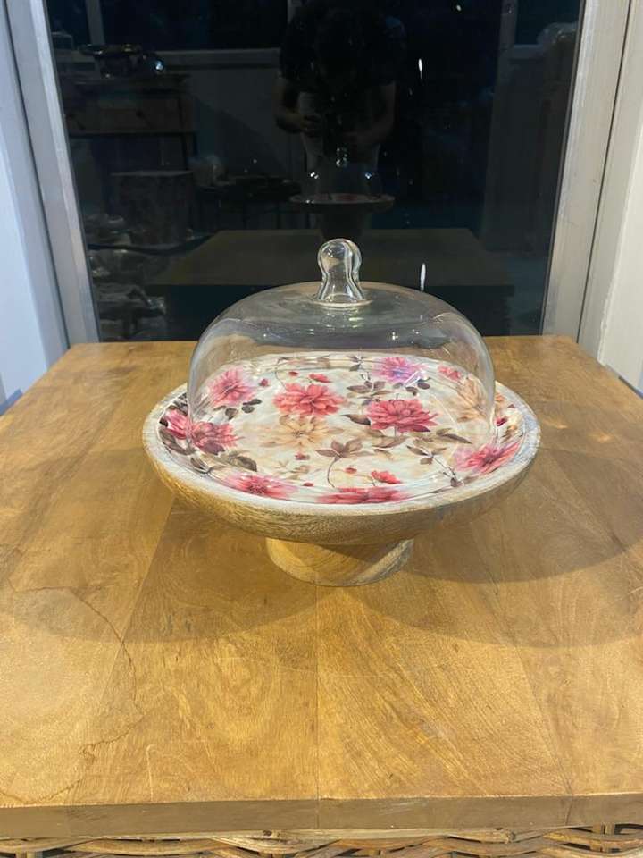 Wood Round Cake Stand New Design Enamel Finished Cake Server Stand With Dome Lid Indian Style for Kitchen Ware