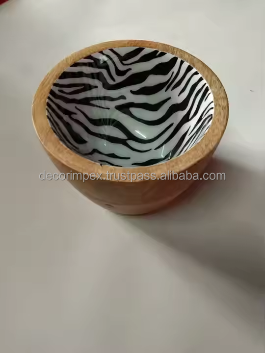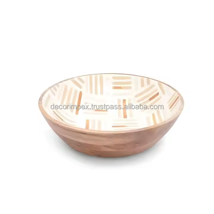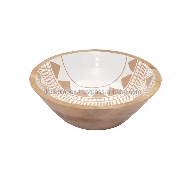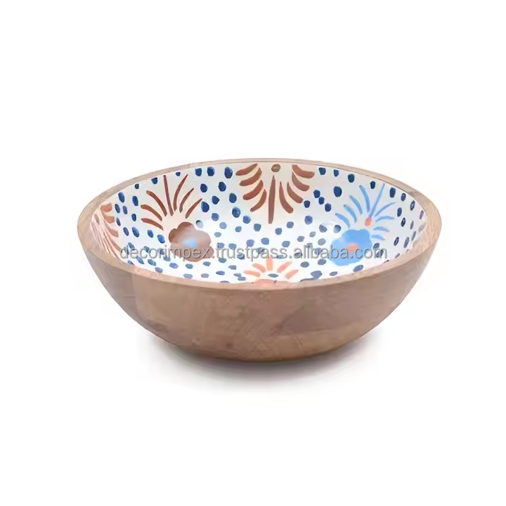 Wood Serving Bowl Natural and Attractive Floral Enamel Print Multipurpose Decorative Salad Bowl for Kitchen Table