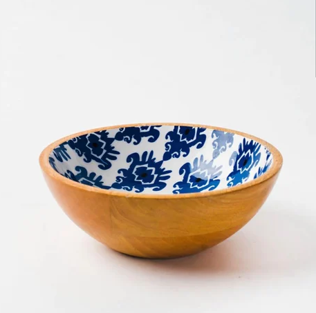 Wood Serving Bowls Customization 100% Natural Wood Bowl With Enamel Printed Customized With Excellent Quality