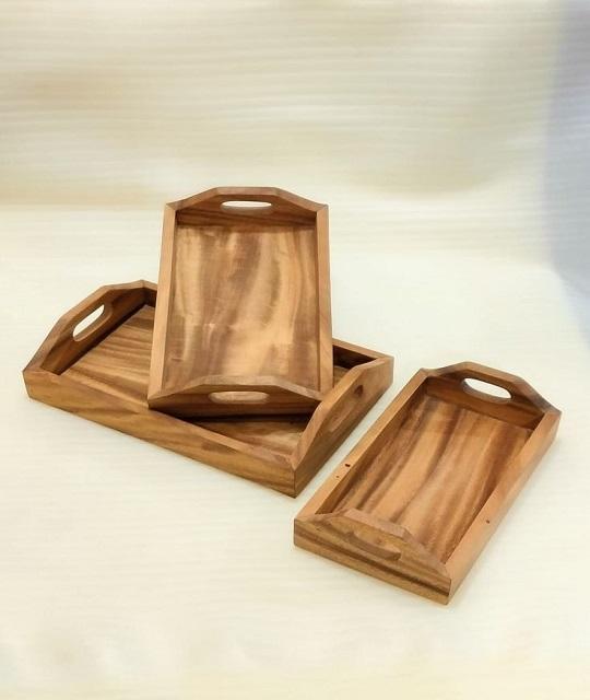 Wood Serving Tray for Coffee Food Breakfast DinnerSet of 3 Large Bamboo Serving Tray with Handles
