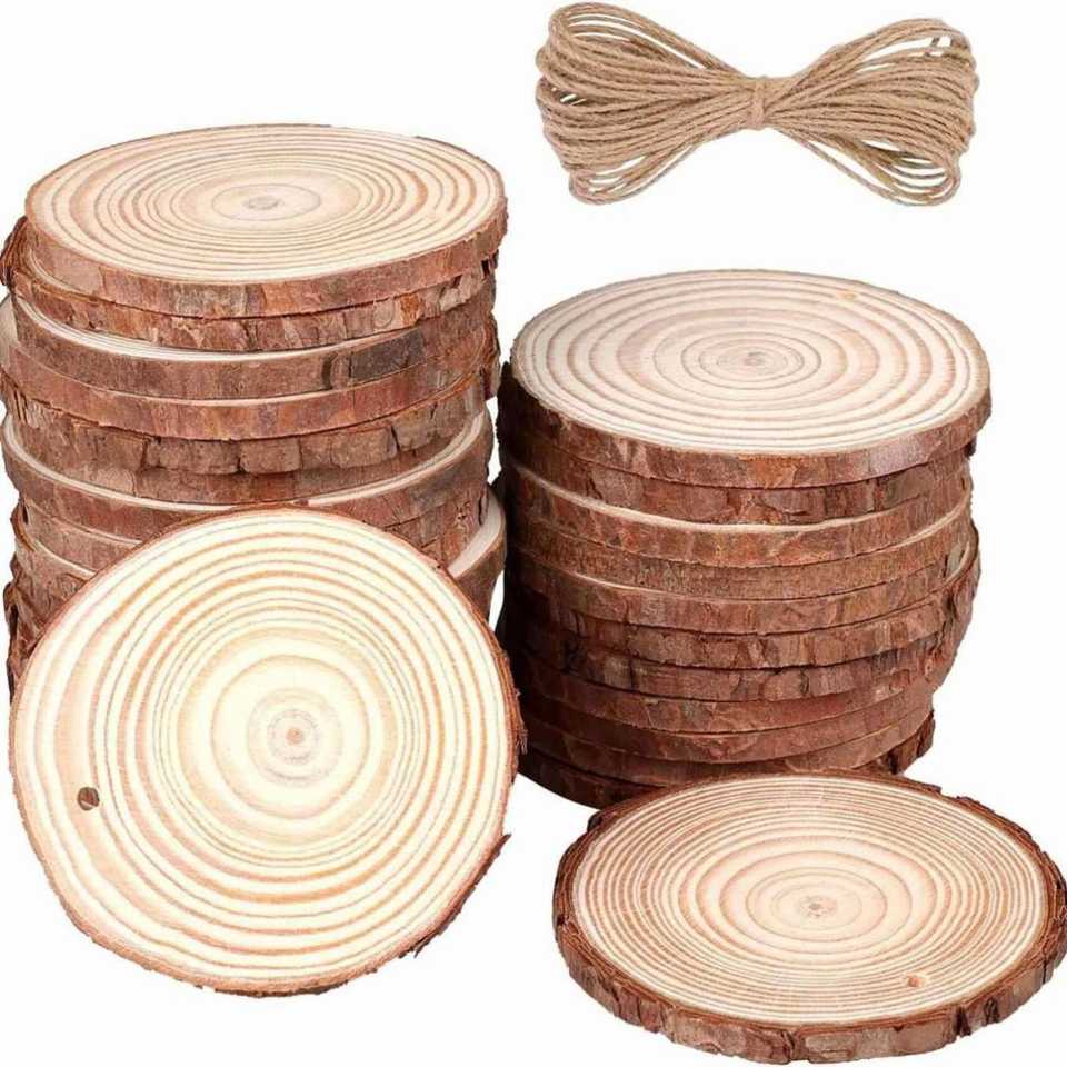 Wood Slices Circles 3cm-20cm Natural Pine Round Unfinished Ornament DIY Crafts Christmas Party Painting Tree Bark Log Discs