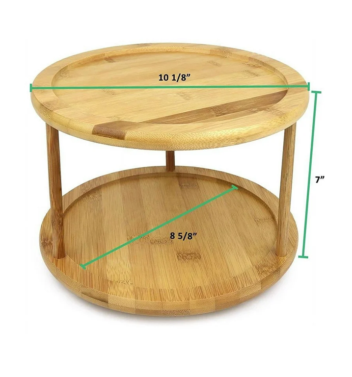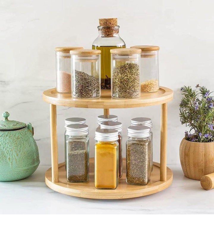 Wood Spice Food Storage Lazy Susan Rotatable Two-tire Table Wooden Spice Jar Organizer Wood File Organizer