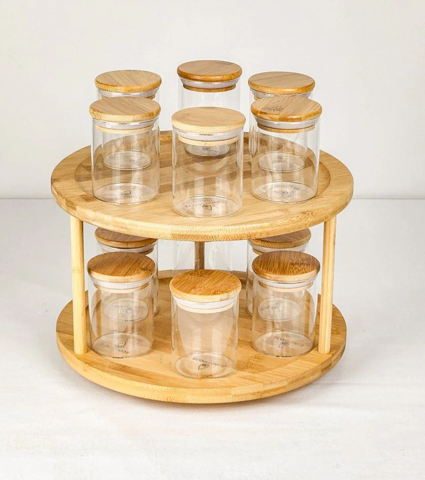 Wood Spice Jar Rack Square Tray Shape 12 Bottle Jars Holder Stand Rack And Shelving Saving Rack