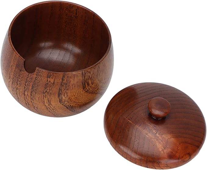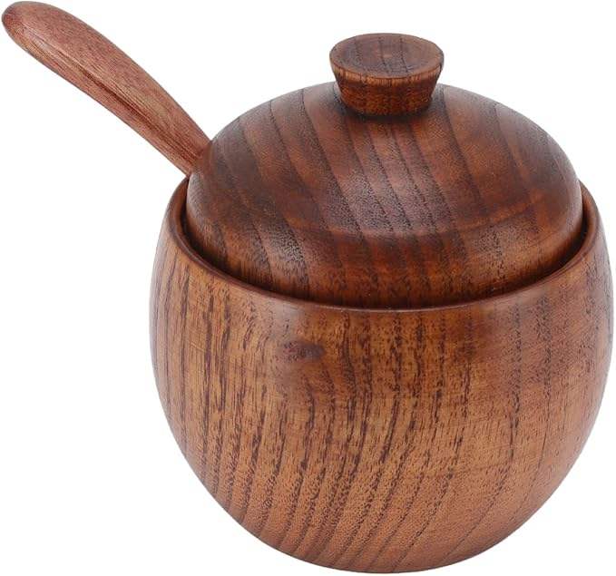 Kitchen Decorative Herb Spice Tools Wood Spice Pot Spoon Lid Seasonings Storage Container for Salt Sugar Chili Other Ingredients