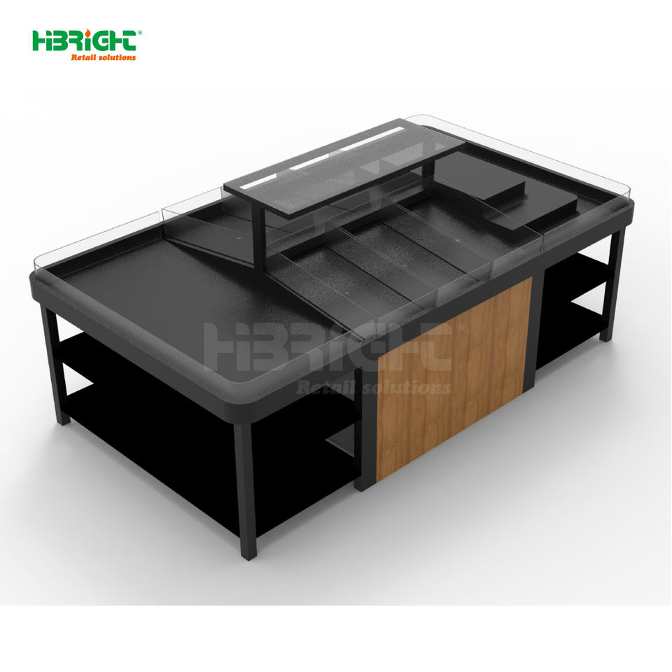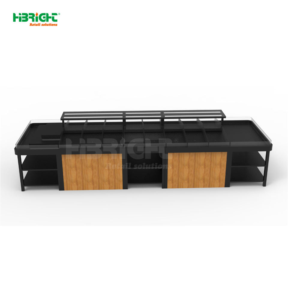 Wood & Stainless Steel Eco-Friendly Vegetable Display Stand for Convenience Stores Groceries Supermarkets