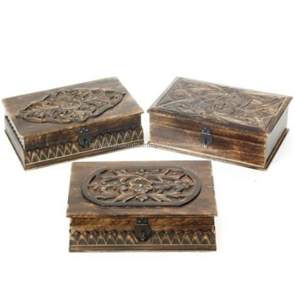 Wood Storage Box with Lid Solid Wood Container Box Decorative Table Smooth Rustic Style Store Space to Organize Toys