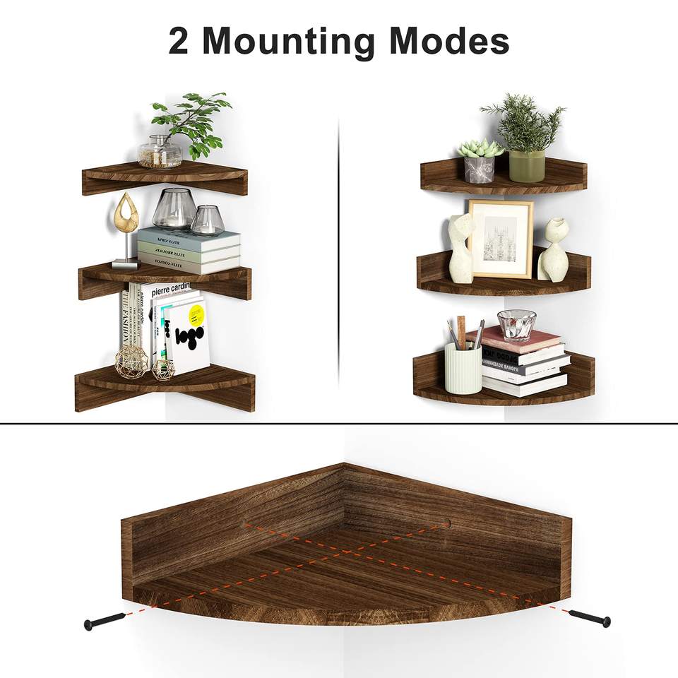 Wood Wall Mounted Corner Shelf Floating Shelves for Storage and Display Wood Shelves for Bedroom Kitchen Living Room and Office