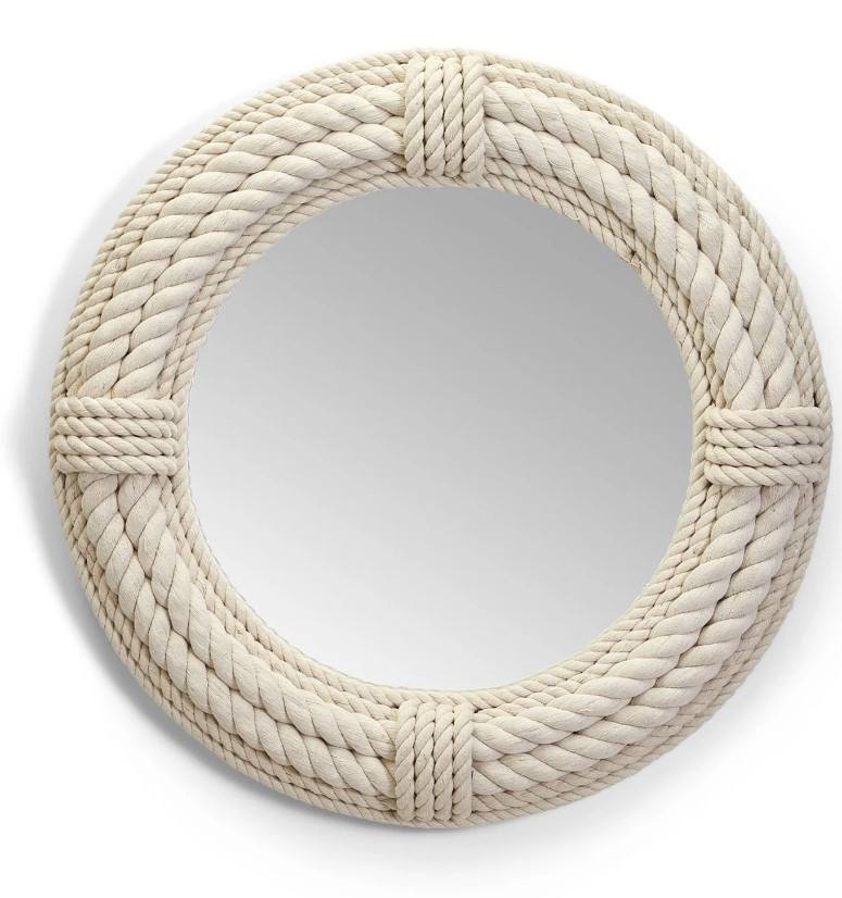 Wood White Rope Mirror Rustic Wall Mount Mirror Bathroom Mirror