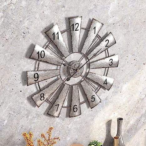 Product Name:Wood and Galvanized Metal Decorative Wall Clock Brown