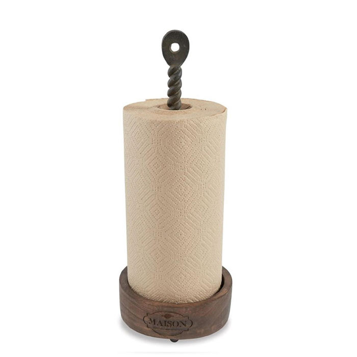Wood and Iron Countertop Paper Towels Holder Standing Roll Dispenser Rack Door Knob Paper Towel Holder