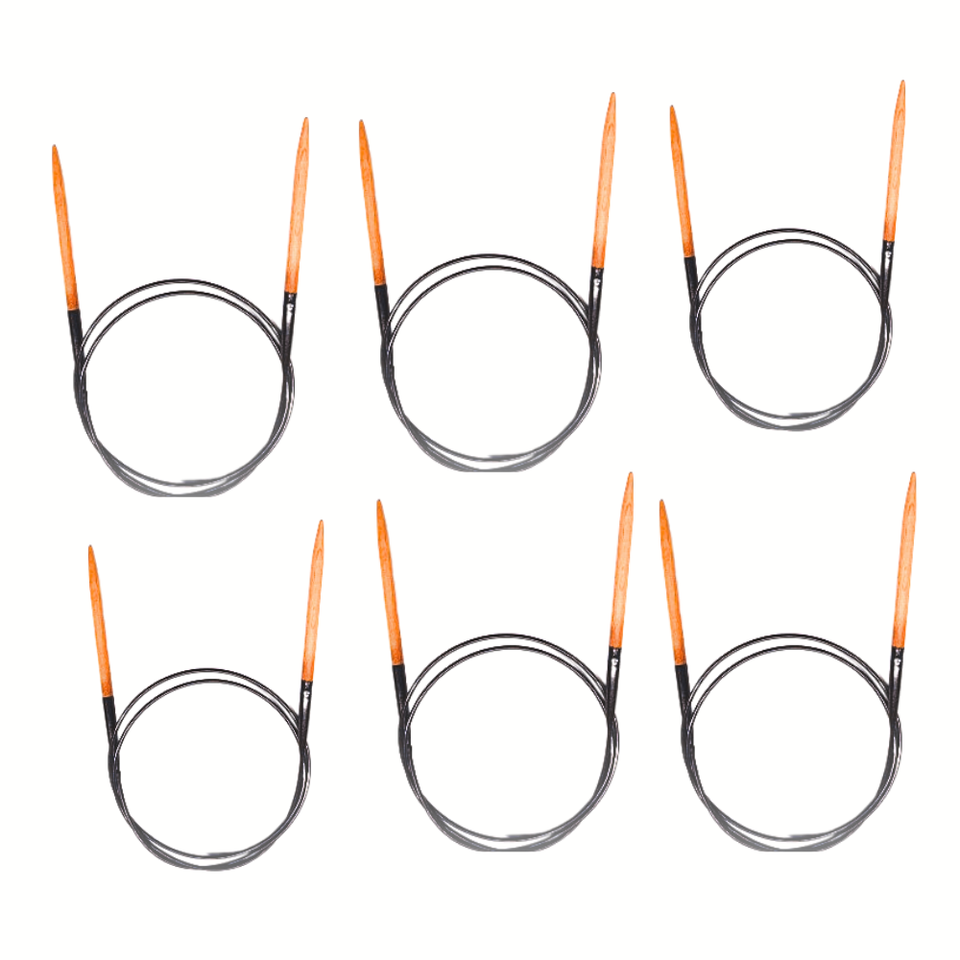 Wood cable knitting needles with premium finish and flexible cable. Trusted export product for EU and US knitting brands