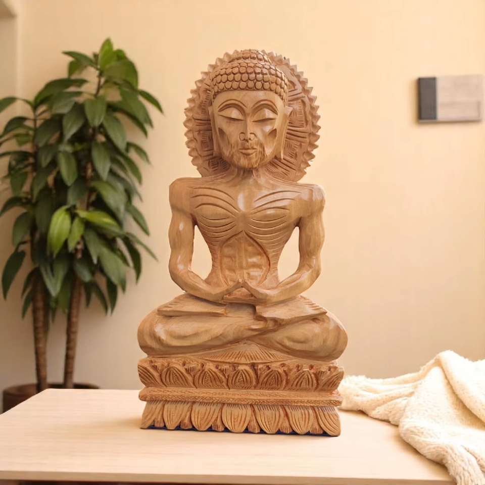 Handcrafted 10 Inch Polished Wooden Skeleton Buddha Statue Spiritual Figurine Meditation Decor Idol Display Bulk Export