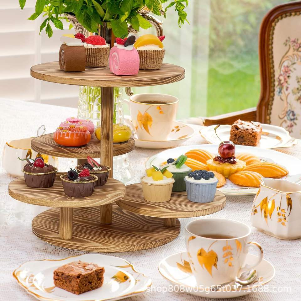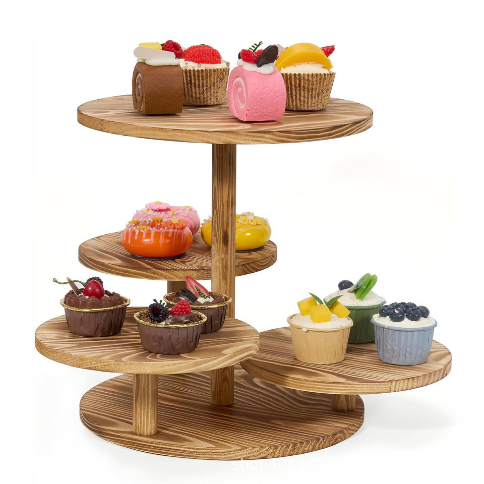 Wooden 4 Tier Cupcake Stand Desktop Display Rack Rustic Solid Wood Multipurpose Storage Tray For Home Dcor Foods Beverages