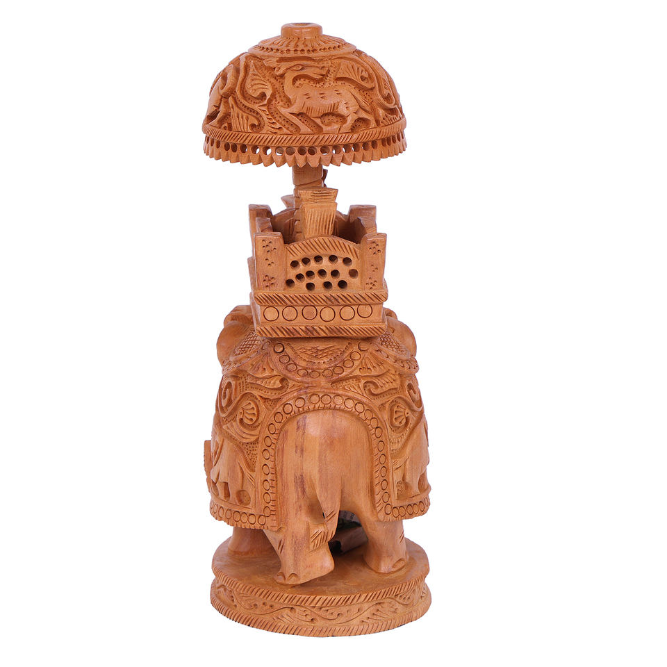 Ambawadi Elephant Rider Decorative Umbrella 8 Inch Traditional Indian Sculpture Handcrafted Polished Wooden Box Wall Sign Bulk