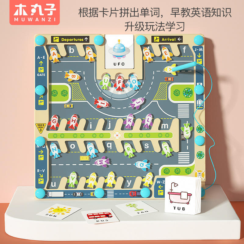 Wooden Airport Maze Magnetic Letter Matching Puzzle Board For Kids Learning Color Sorting Counting Logic Thinking Toy