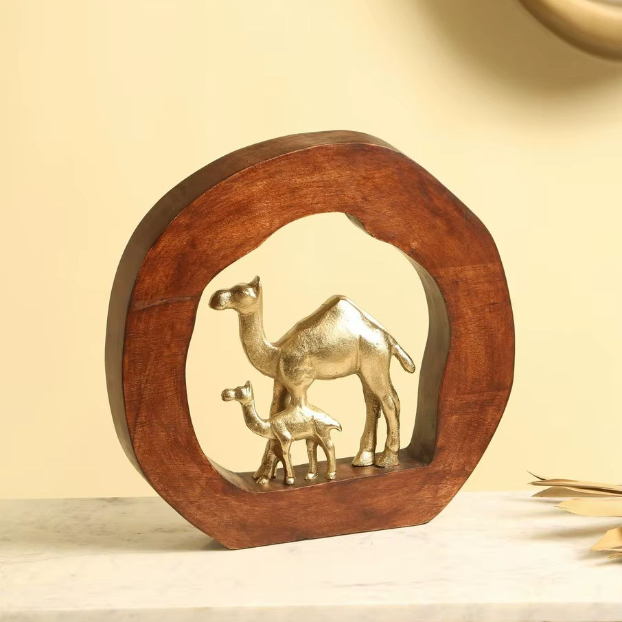 Wooden And Metal Camel Sculpture For Office Desk Living Room Shelf Entryway Display Modern Decorative Handmade Accent Piece