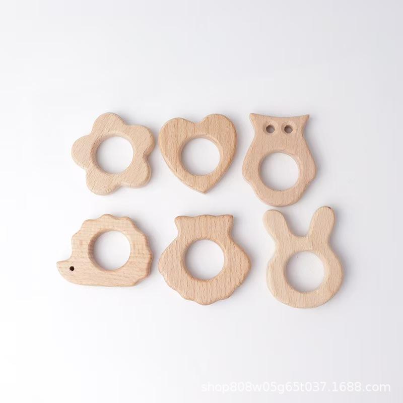 Wooden Animal Baby Teething Toys Bear Rabbit Horse Fox Pacifier Round Natural Beech Wood 0 To 24 Months Unisex Soft Toy