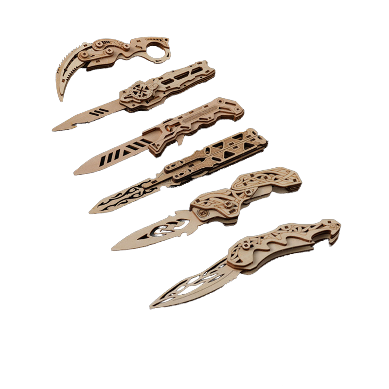 Wooden Assembly Knife Toy DIY Butterfly Folding Straight Jump Claw Training Balisong Toy for Kids Unisex CSGO Model