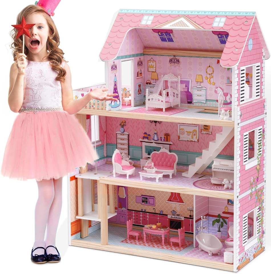 Wooden Baby Doll Furniture Hot Pink Color Baby Doll Crib With Musical Box