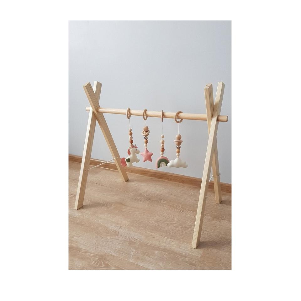 Wooden Baby Play Gym With Crochet Animal Toy Eco-friendly Deer and Bear Baby Play Gym 99GD