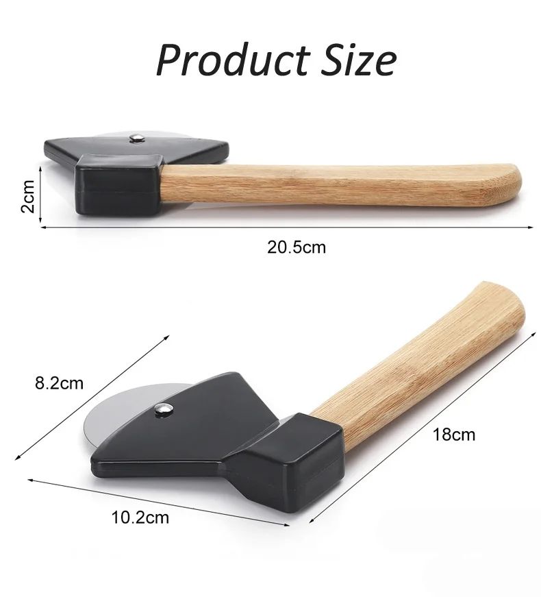 Wooden Bamboo Handle Axe Shape Single Wheel Roller Bread Pies Round Knife Cake Knife Pizza Tool Pizza Cutter