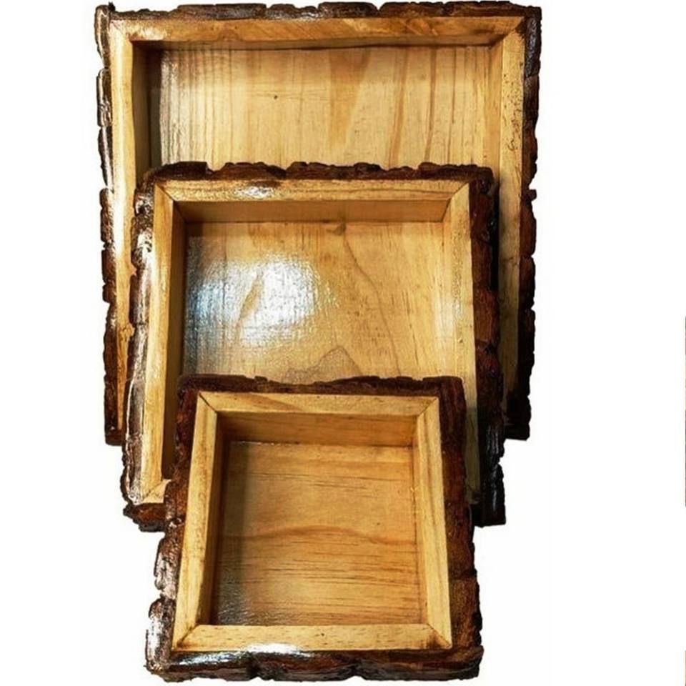 Eco-Friendly Wooden Bark Serving Platter Set & Decorative Bowl Food Contact Safe Modern Style Made in India
