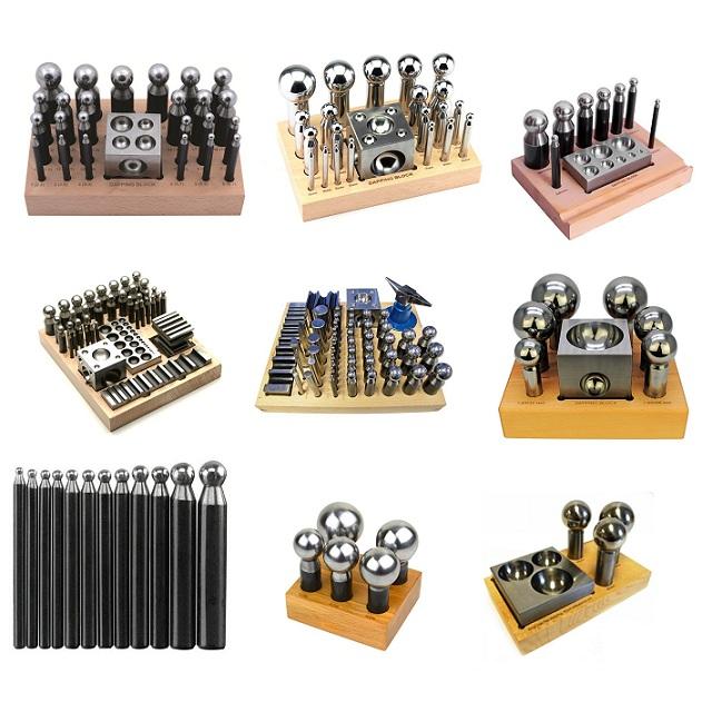 Wooden Base Jewelry Tools Set of 9 Pcs Dapping Tool Punch and Dapping Block