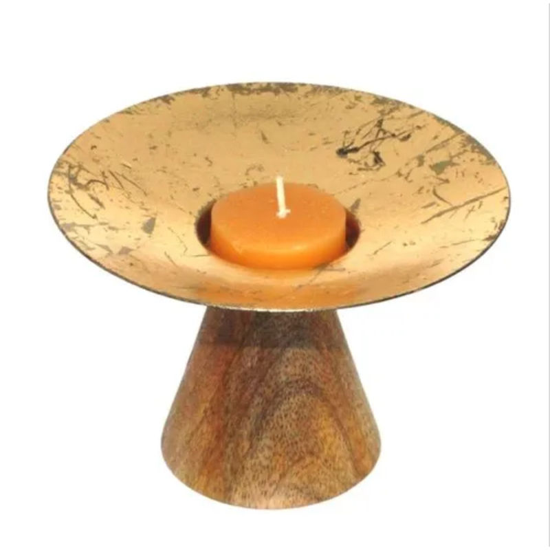 Wooden Base Metal Iron Table Candle Stand with Round Tea Light Holder Perfect for Elegant Home and Event Decoration