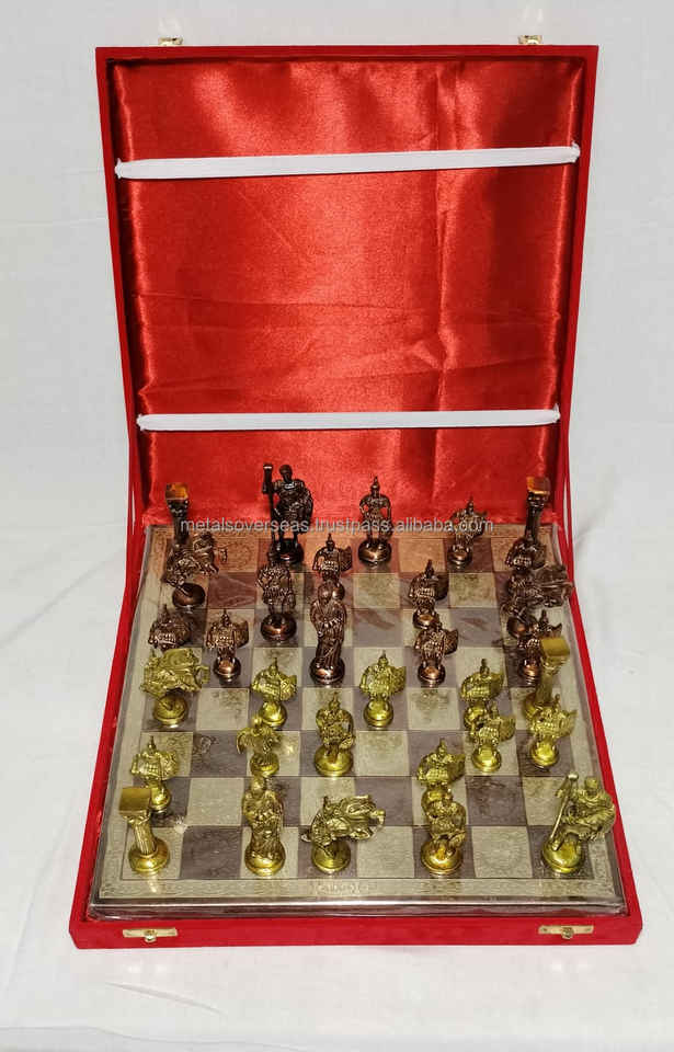 Wooden Base Metal Piece Chess Board Game Set Portable Custom Luxury Colourful Gold & Silver Plated Folding Regulation Finishing