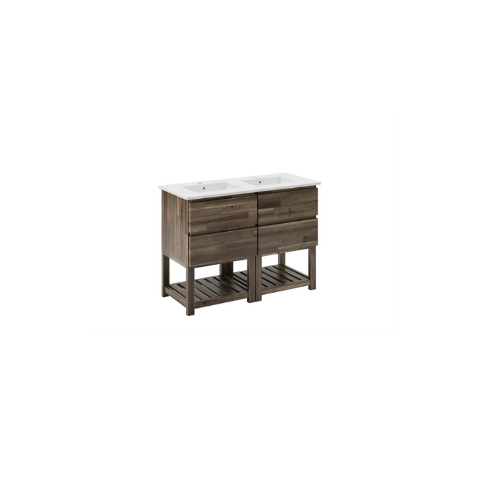 Modern Wooden Bathroom Vanity Wall-Mounted Ceramic Basin Mirror Included Solid Oak/Pine/Acacia Wood Vietnam Factory ODM Service