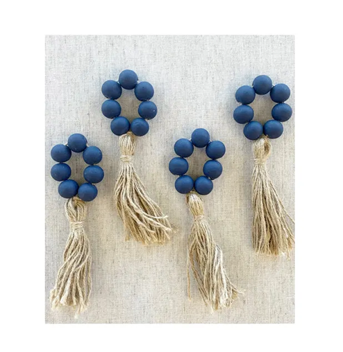 Wooden Beads Napkin Holder Set Rope Tassel Beads Napkin Ring for Party and Home Table Decoration items