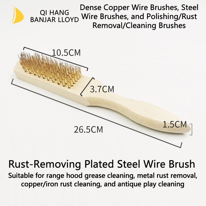 Wooden Beavertail Handle Copper-Plated Steel Wire Brush for Metal Surface Cleaning and Rust Removal 8 in or More