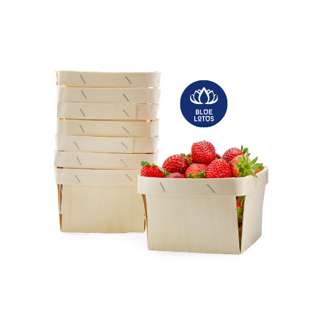 Wooden Berry Basket Natural Eco Farmhouse Fruit Box Rustic Wooden Container for Strawberry Blueberry Raspberry Wholesale