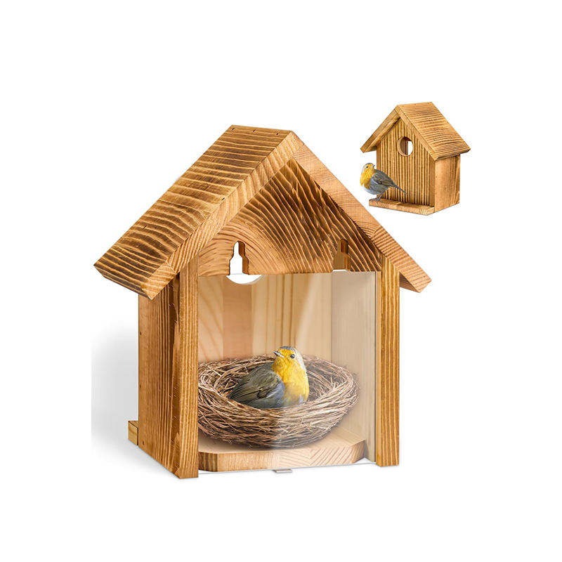 Wooden Bird House, Hanging Bird House, Clear Garden Country Villa, Transparent Glass Bird Nest