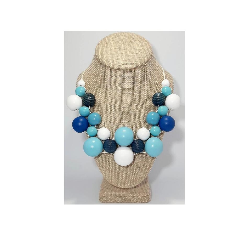 Wooden Blue Beads Necklace Woman Fashion Necklace Decor Clothing Accessories
