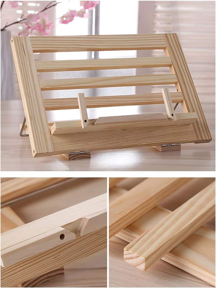 Wooden Book Holder Kitchen Adjustable Page Clips Foldable Textbooks Holder Stand for Students Kid Adult Home Adjustable